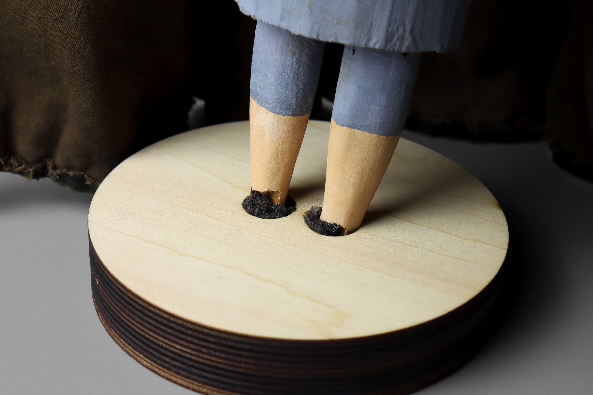 Missing tips of fingers on one hand. Some minor marks and wear to surface. The statue appears to have had the feet broken and has been crudely glued to the modern base. The Virgin Mary should have a halo that is now missing – evidenced by the small hole on top of her head and the cloak. Age related wear as expected. Overall good. Please examine photos carefully.