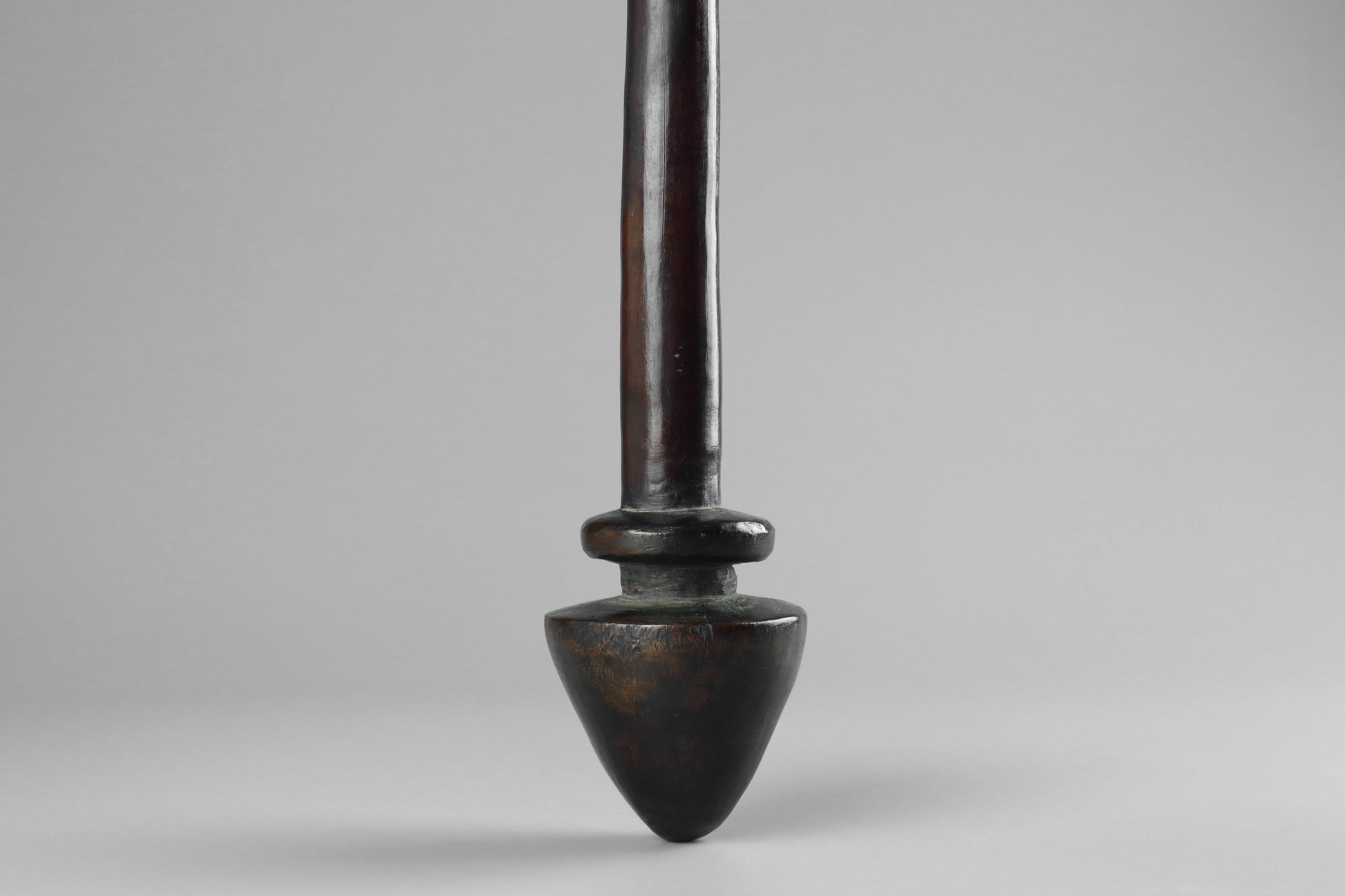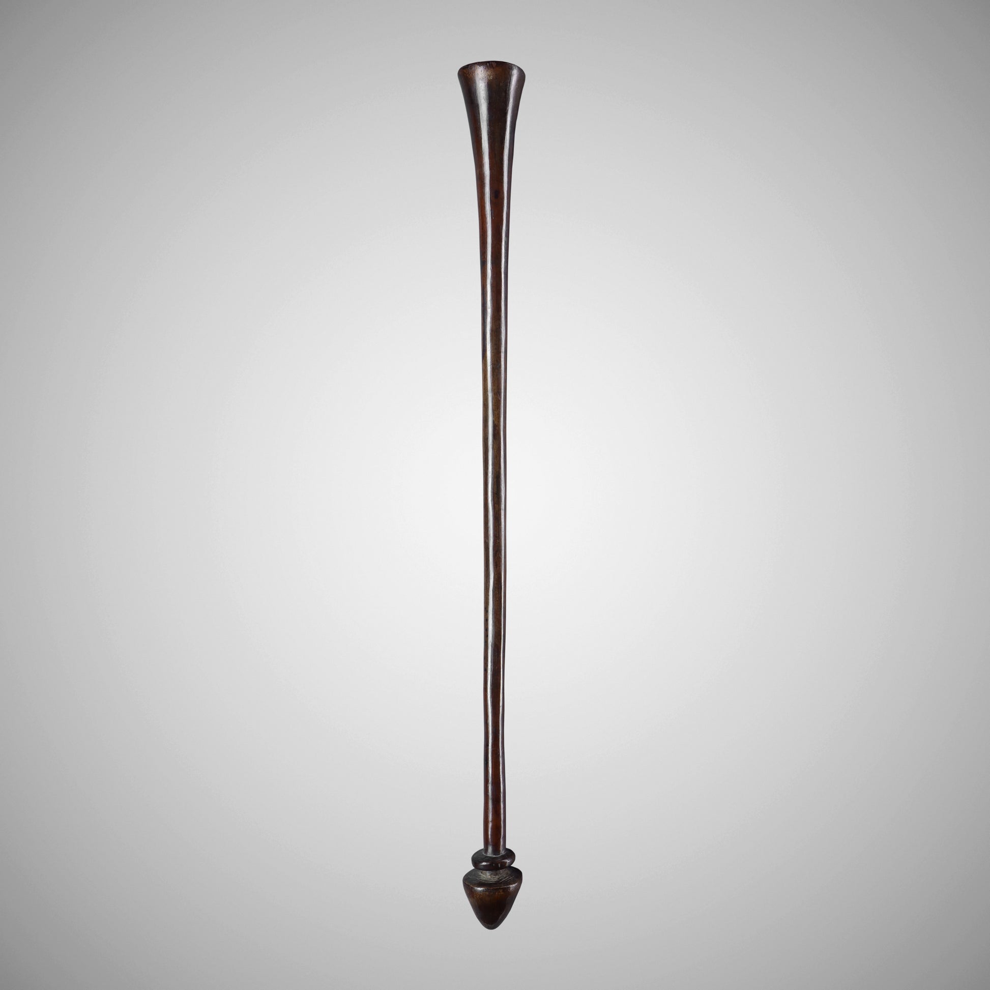 A Vanuatu war club, dating to the 19th century. This club is of long tapering form that widens towards the large heavy head. The terminal end has a conical base. This is a good heavy club that is well balanced and has an excellent dark colour and glossy patina.